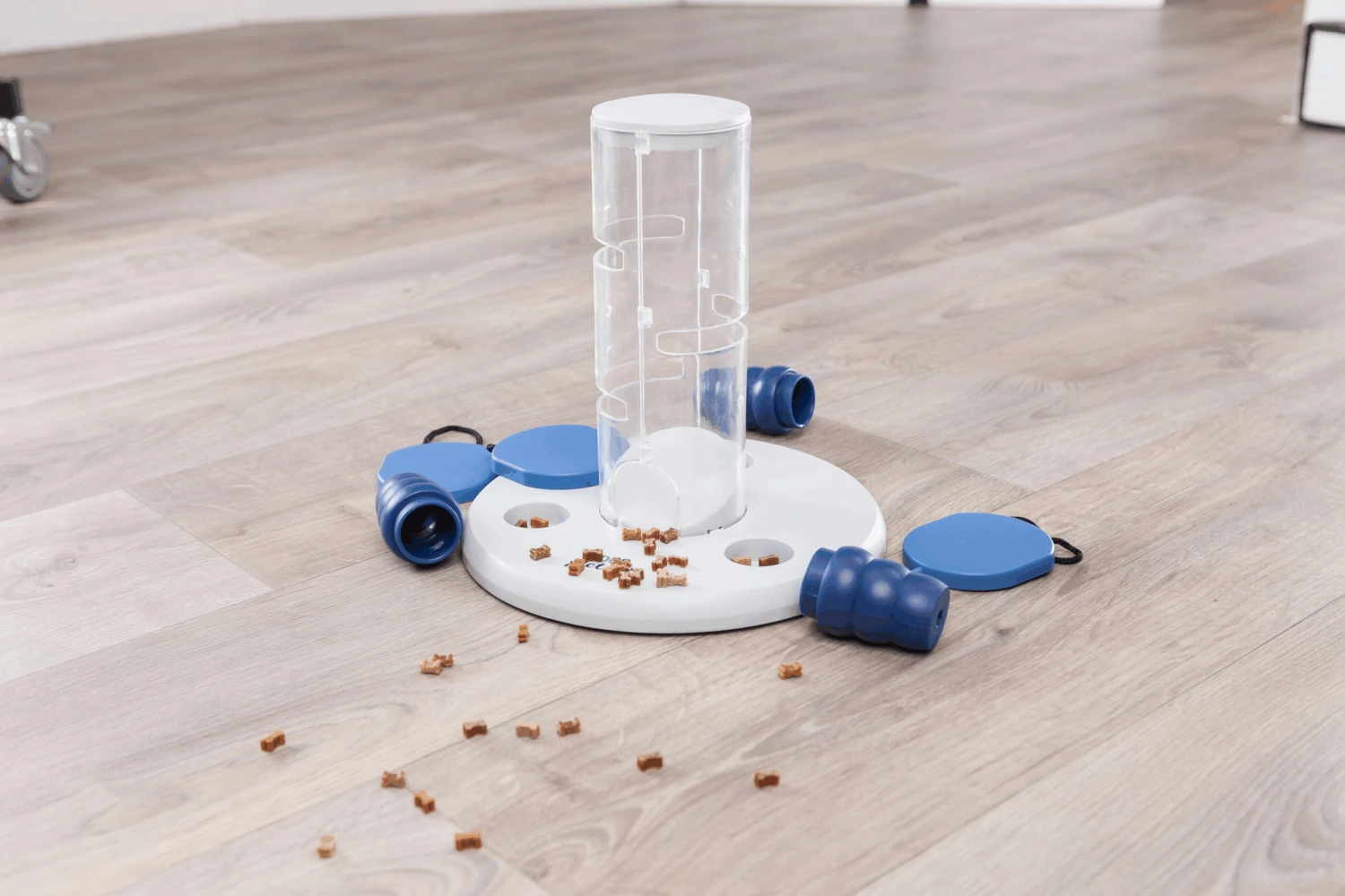 Votre chien ne s’ennuiera plus avec ce jeu amusant de Trixie ! Cette tour de jeu est une tour qui se compose de divers disques et cônes. Les disques doivent être éloignés par le chien, ce qui fait que les friandises tombent et se rapprochent de plus en plus du chien. Les cônes doivent être poussés vers le bas, après quoi le chien peut accéder aux friandises qui se trouvent en dessous. La tour est en plastique, donc facile à nettoyer, elle est antidérapante grâce à ses pieds en caoutchouc. Cette tour de jeu est livrée avec un manuel de formation.